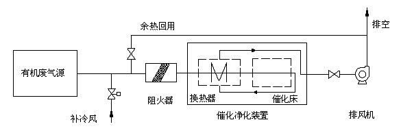 燃燒后生成CO2和H2O并釋放出大量熱量,該熱量一部分直接排空;另一部分與室外來的空氣混合作活性炭脫附氣體使用,減少了能耗,且無二次污染產(chǎn)生。