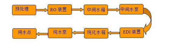 3、反滲透+EDI電去離子裝置等階段。“預(yù)處理+反滲透+EDI電去離子”整套除鹽系統(tǒng),有著其它處理系統(tǒng)無可比擬的優(yōu)點,正被廣泛應(yīng)用于純水、高純水設(shè)備中。