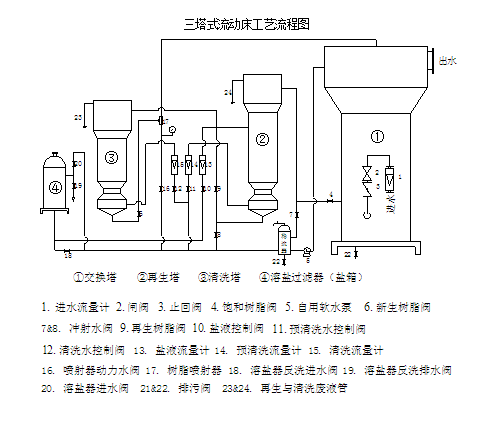 11、三塔流動床從各方面的獨特性和合理設(shè)計,經(jīng)過實踐使用證明該設(shè)備是目前較為理想的水處理設(shè)備。其綜合性能比固定床及全自動離子交換器出色。